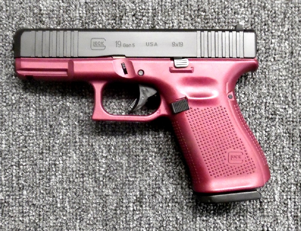 Preowned, Like New, Glock 19 Gen-5, 9mm, 4.0″ Barrel, 15 Rounds, 3 Magazines, Black Cherry Finish: Only $529!