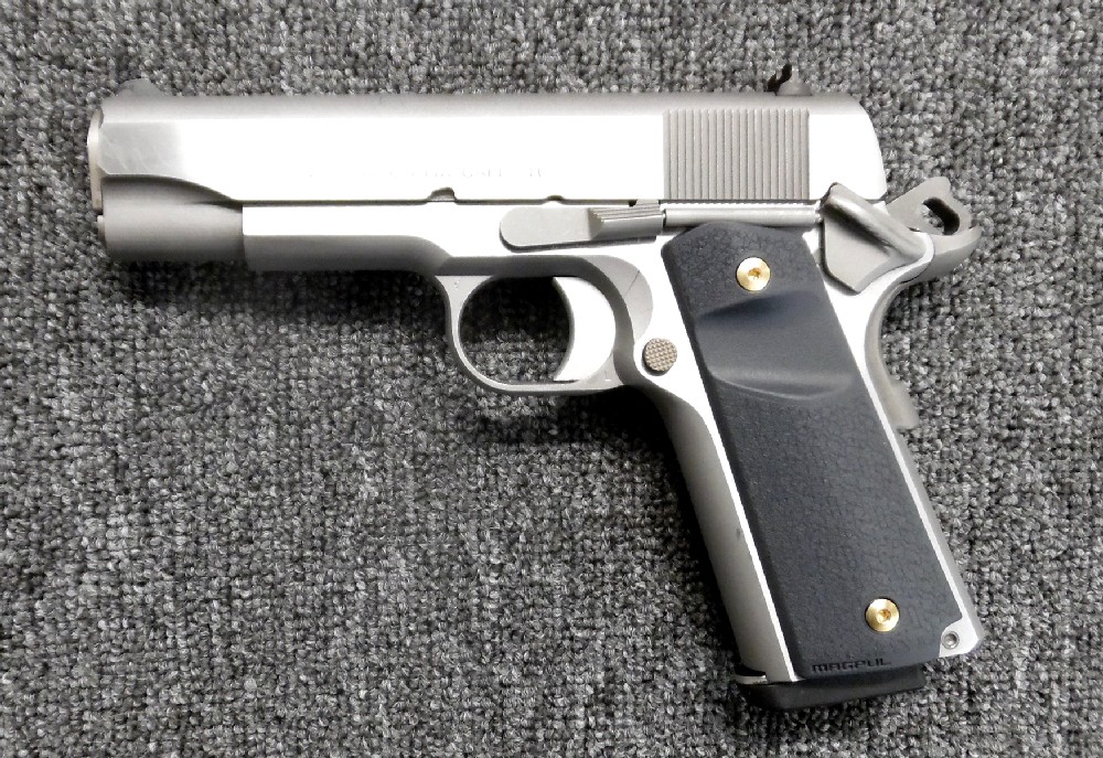 Preowned, Good Condition, Colt Commander Semi-Automatic Stainless Steel Pistol, .45 ACP, 4.3″ Barrel, 8 Rounds, 2 Magazines, White-Dot Sights, Magpul Grips: Only $597!