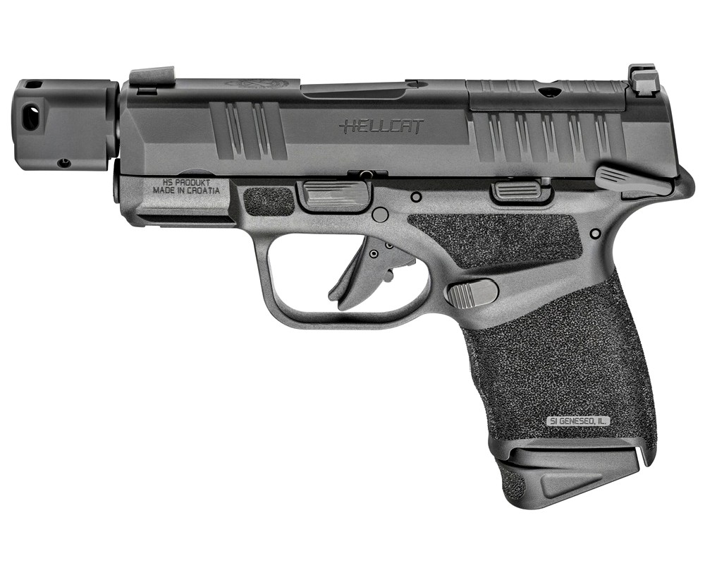 New Springfield Hellcat RDP Micro-Compact Pistol, 9mm, 3.8″ Hammer Forged Barrel, Black Melonite Finish, Optics Ready, Front Tritium Night Sight, Tactical Rack U-Notch Rear Sight, Manual Safety, Compensator, 11 & 13 Rounds, 2 Magazines: Only $569!