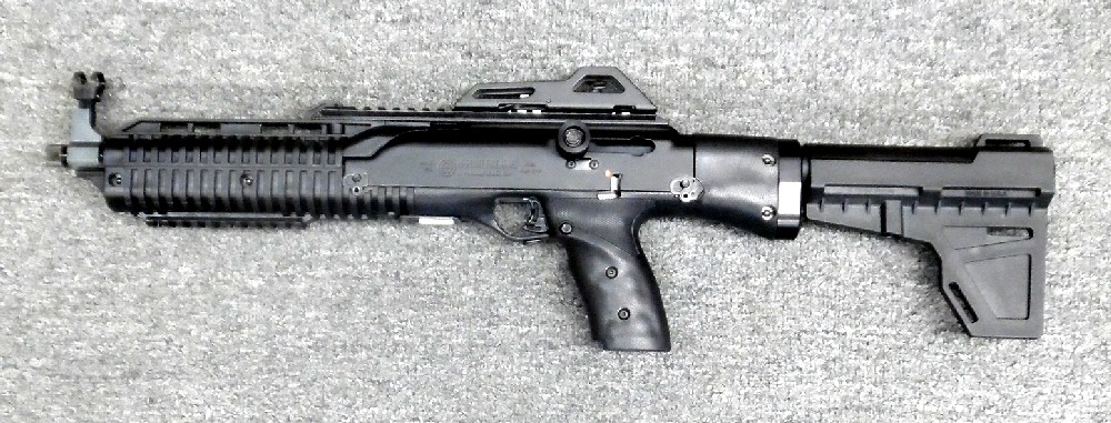 Preowned, Excellent Condition, Hi-Point 995P Semi-Automatic Pistol w/ Brace, 9mm, 13.3″ Threaded Barrel, Matte Black Finish, Blade Style Pistol Brace, Manual Safety, Hi-Viz Sights, 10 & 20 Rounds, 2 Magazines: Only $297!
